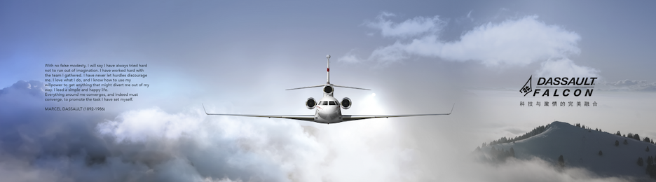 Create a cohesive brand experience across radically different contexts — premium print media, VIP diplomatic events, and ABACE (Asian Business Aviation Conference & Exhibition) in Shanghai — while respecting cultural nuance and maintaining Dassault's French luxury positioning.